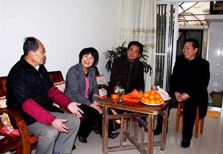 中新網1月27日電 據黃巖區僑聯消息,新春來臨之際,為帶去黨和政府對僑界群眾的一份關愛,1月22日,浙江省僑聯主席吳晶在臺州市僑聯主席吳世民,黃巖區政協副主席、區委統戰部部楊小崇,區僑聯主席陳征的陪同下,冒著嚴寒,帶著浙江省僑聯的深情和祝福,走訪和慰問了黃巖區兩戶老歸僑。