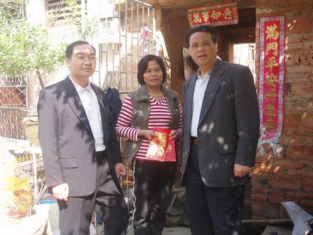 1月26日上午,茂名市外事僑務局副局長陳煌、調研員帶領僑務科人員,在電白外事僑務局局長郭水安等人的陪同下,深入到電白縣水東鎮慰問下崗歸僑劉二妹、黃秀英二人。劉二妹是越南歸僑,靠打散工維持生計,生活困難,前階段所住的磚瓦房屋坍塌,在僑務及其他部門的支持下得以修繕繼續居住。陳煌鼓勵劉二妹積極面對生活,并囑咐電白縣外事僑務局要繼續關心劉二妹的困難,盡量給予工作和生活上的幫助。黃秀英是印尼歸僑,其一子一女尚在讀書,當了解到黃秀英大兒子今年讀高三,即將參加高考時,僑務科同志趕緊提醒她到僑務部門申辦“三僑生”證明。陳煌表示會繼續關心黃秀英子女讀書困難問題,盡量給予幫助。