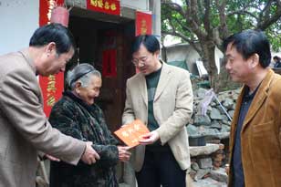 一來(lái)到仙游縣榜頭鎮(zhèn)印尼歸僑楊啟榮家,林澤春就帶領(lǐng)同行人員進(jìn)屋察看他家那原瀕臨倒塌的土墻,當(dāng)發(fā)現(xiàn)原來(lái)的那堵土墻已換成了磚墻時(shí),連聲說(shuō),改造成磚墻到下大雨時(shí)再也不用擔(dān)心墻倒下來(lái)了。當(dāng)細(xì)心的林澤春發(fā)現(xiàn)房間里很暗但沒(méi)有電燈,了解到因一人獨(dú)居沒(méi)有收入家中還沒(méi)通電時(shí),立即交待隨行的鎮(zhèn)黨委書(shū)記,要多多關(guān)心困難歸僑,臨近春節(jié)沒(méi)有電生活會(huì)極不方便。村主任解釋說(shuō),電工已來(lái)他家兩次,都沒(méi)遇到人,保證今天晚上通上電,另外老楊的最低生活保障也已報(bào)批。當(dāng)楊啟榮從林澤春手中接到慰問(wèn)金時(shí),感激之情不能言表。