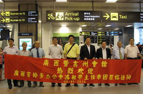 新、馬、泰慰問團訪問了曼谷、吉隆坡、新加坡,先后拜訪了了泰國九屬會館、泰國隆發盛企業有限公司董事長封家正、泰國廣西總會、馬來西亞廣西總會、馬來西亞前國會議長曾永森、馬來西亞雪隆廣西會館、新加坡廣西暨高州會館、新加坡宗鄉會館聯合總會、新加坡中華總商會。在吉隆坡舉辦了“八桂摯友”海外迎春聯誼酒會。