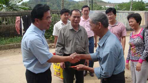 每到一戶,王勝都詢問他們家庭的生產生活情況及身體狀況,并送上慰問金和慰問品。瓊中和屯昌縣政府官員和當地外事僑務辦負責人陪同慰問。