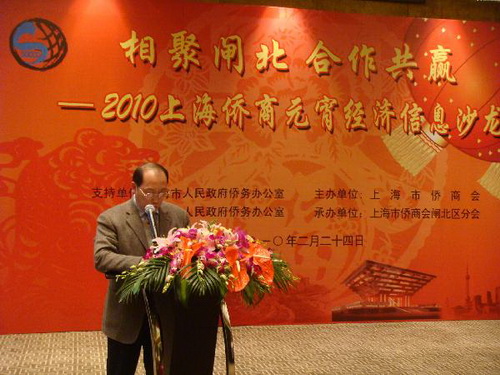 孫國彪向僑商們介紹閘北區投資環境和經濟發展的目標。市僑商會副會長沈欽華代表市僑商會對市僑辦、閘北區委、區政府及及有關職能部門對僑商事業的關心和支持表示感謝。