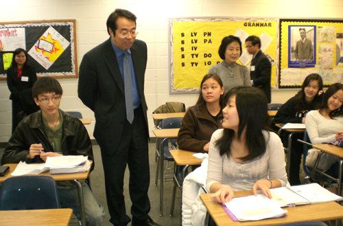 在與華文教師座談時候,他充分肯定華夏中文學校在凝聚僑胞傳承中華文化、開展社區活動方面發揮的重要作用,贊譽華教工作是“牛耕工程”。他強調,海外各地華人子弟學習中文的條件不盡相同,中文學校要針對學生的不同情況因材施教。華文教育示范學校要進一步發揮對周圍地區其他中文學校的輻射和帶動作用。