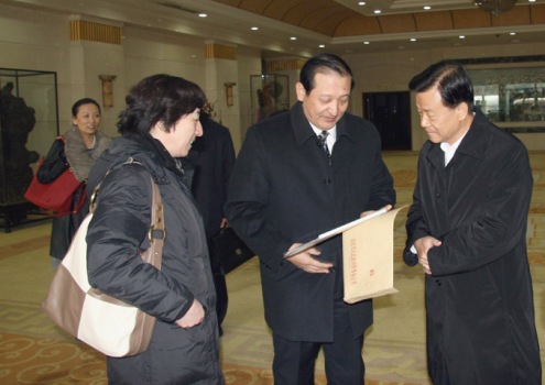 抵達濟南時,山東省僑辦副主任史進、濟南天橋區區長王建軍、濟南市僑辦副主任蘇峰到機場迎接。在機場貴賓廳史進與許榮茂進行了親切交談,并向其發出邀請,希望他撥冗出席2010年9月國務院僑辦和山東省政府在濟南聯合舉辦的“第五屆華商企業科技創新合作交流會”,并作為主講嘉賓在大會論壇發表演講。史進將邀請函鄭重交給許榮茂,許榮茂欣然接受了參會邀請。