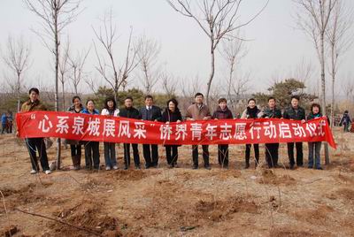 3月13日,利用周末休息時間,濟南市僑聯組織廣大僑界青年在濟南植物園開展了義務植樹活動,藉此啟動了僑界青年“心系泉城展風采”志愿行動。