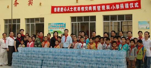 近段時間,廣西百色市右江區旺甸瑤族鄉兩琶村小學遭遇特大旱災,學校蓄水池斷水多日,引起了社會各界的廣泛關注,也牽動了廣西壯族自治區、百色市、右江區僑辦領導的心。經廣西僑辦搭橋牽線,香港謝家忠、葉林慧儀、原秋明等愛心人士,心系瑤寨小學生,千里奔瑤鄉,將一縷縷清澈的泉水運送到了旺甸瑤族鄉兩琶村小學。