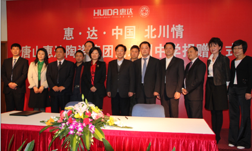 王永樂代表中國僑聯對惠達陶瓷(集團)股份有限公司支持援建北川中學的義舉表示感謝。他說,惠達集團是在地震廢墟上開始創業發展起來的,經歷過唐山地震的惠達集團對汶川地震有更為深切的體會。惠達集團在得知中國僑聯援建北川中學的消息后,迅即與中國僑聯取得聯系,向北川中學捐贈所有的潔具產品,并以企業的成本價向學校提供裝修所用的優質瓷磚,正是有了像惠達集團這樣有社會責任感的企業的大力支持,中國僑聯援建北川中學的項目才能取得今天的成績。