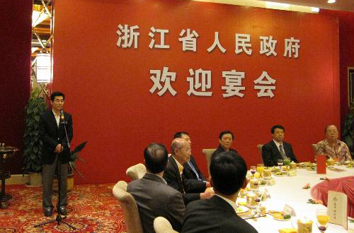 中新網5月18日電 據浙江僑網消息,5月13日晚,浙江省政府在花中城友誼廳舉行宴會,熱烈歡迎參加第五屆世界華僑華人社團聯誼大會的80余位海外華僑華人社團負責人。浙江省副省長龔正,省政府副秘書長夏海偉,國僑辦文化司副司長周虹出席宴會。