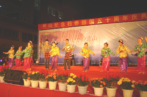 中新網5月24日電 據福建僑網消息,日前,福建省泉州雙陽街道坪山(原名鵬山)歸僑舉行“紀念歸僑回國50周年”,用自己的歌聲和舞蹈紀念這個重要日子,抒發出“偉大的祖國是華僑最有力的靠山”的情懷。