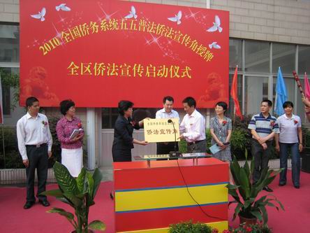 活動儀式上,江蘇省僑辦副主任季俊秋和常州市僑辦主任蔡楚秋共同為奔牛鎮“僑法宣傳角”授牌,并向鎮領導贈送了電腦和打印機。