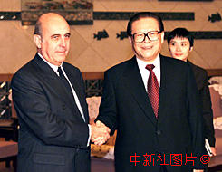 國家主席江澤民二十三日在北京人民大會堂會見澳門總督韋奇立。作者:李剛