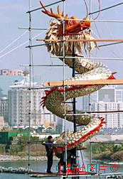 為迎接澳門回歸,澳門南灣湖內正在加緊安裝“群龍戲水”等四組大型燈飾。