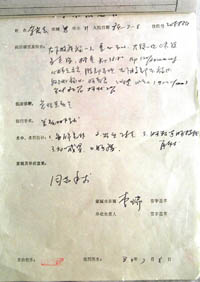 李洪志曾住院手術(shù)(一) ![]() 8月3日,吉林省人民醫(yī)院發(fā)現(xiàn)李洪志曾在該醫(yī)院做過闌尾炎手術(shù)的住院病歷。李洪志在1984年7月8日早晨突 發(fā)急性化膿性闌尾炎,住進(jìn)吉林省人民醫(yī)院普通外科,發(fā)燒38.9度,于當(dāng)天下午實施闌尾切除手術(shù),住院10天。由于當(dāng) 時醫(yī)生筆誤,錯將李洪志寫作“李宏志”,根據(jù)病歷上的患者年齡、工作單位、家庭住址及家屬(李妻)的手術(shù)簽字,可確定 患者即李洪志。這是李洪志手術(shù)時,其妻簽署的術(shù)前文件。經(jīng)公安部門鑒定,簽字確為李洪志妻子李瑞親筆所簽。張寶江攝( 新華社稿 傳真照片) |
