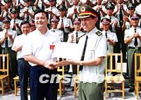 圖:珠海慰問駐澳部隊官兵 2001年07月27日 20:39 ![]() 七月二十七日,珠海市委市政府慰問團到駐澳門部隊珠海基地慰問,珠海市副市長郭開華(左)代表珠海市向駐澳門部隊珠海基地贈送慰問金。中新社圖 石頭 攝