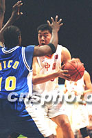 專程從NBA達拉斯小牛隊回國參賽的王治郅,二十二日在中國隊首場比賽中亮相,成為場中的焦點。中新社圖 鄭萍萍 攝