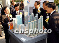 圖:香港地鐵物業夥同四大房地產商推介西九龍物業 2001年11月21日 19:41 ![]() 香港地鐵物業總監何恒光(中),11月21日夥同恒隆集團主席陳啟宗(左一)、新鴻基地產副主席郭炳江(左二)、九龍倉集團主席李唯仁(左三)、永泰亞洲富聯國際行政總裁鄭維新等共同推介正在建設的西九龍面積達1,200萬平方尺的超大綜合發展項目。中新社記者 任晨鳴 攝 |