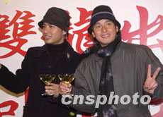 歌星譚詠麟、李克勤22日在香港舉行“雙龍出海加開日場演唱會”記者會。兩位歌星將分別在紅館舉行演唱會,由于樂迷反應(yīng)熱烈,門券同樣售馨,現(xiàn)加開日場滿足樂迷需要。譚詠麟、李克勤會上舉杯慶祝演唱會場場爆滿。中新社記者 鄧慶樂 攝