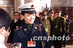 解放軍代表、著名歌唱演員宋祖英五日出席在北京人民大會堂舉行的中國第九屆全國人大第五次會議。中新社記者 毛建軍 攝
