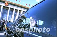 美國使節在北京人民大會堂旁聽九屆全國人大第五次會議后,驅車駛離天安門廣場。中新社記者 劉殊瑾 攝