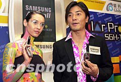 ![]() 歌影視紅星鄭伊健12日在香港應邀出席三星Anycall SGH-T108彩色顯示手機發布會,鄭伊健繼續出任三星Anycall新手機代言人,并向媒體展示新手機。中新社圖 鄧慶樂 攝