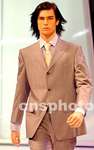 圖:男裝系列簡潔而硬朗 2002年03月19日 19:35 ![]() FERRAGAMO時裝表演展出男裝系列.國際名牌SALVATORE FERRAGAMO春夏季之時裝表演19日在香港舉行,今季展出男裝系列,以傳統三粒紐扣款式設計,簡潔而硬朗。中新社傳真 洪少葵 攝