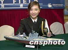 圖:應采兒為網上游戲《諜海雄師》出任代言人 2002年03月19日 19:37 ![]() 新晉女影星應采兒19日在香港為網上游戲《諜海雄師》出任代言人舉行記者會,應采兒一身海軍服飾并加上戰艦模型,頗具威風。中新社傳真 鄧慶樂 攝