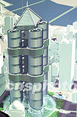 圖:紐約世貿大樓重建設計層出不窮 2002年05月21日 09:34 ![]() 隨著世貿廢墟清理工作接近結束,有關世貿大樓重建的設計開始引人注目,設計方案層出不窮。日前,巴哈馬的新西蘭商人德里克在紐約把來自夢中的創意展現給公眾,環狀、杯狀以及瓶蓋形狀是這一設計的最初幾何元素。經過專業建筑師的修飾,人們現在看到的是一個一百一十一層高、帶著“金字塔”帽子、由四個圓柱型塔樓組成的醒目的建筑體。趙海燕 攝
