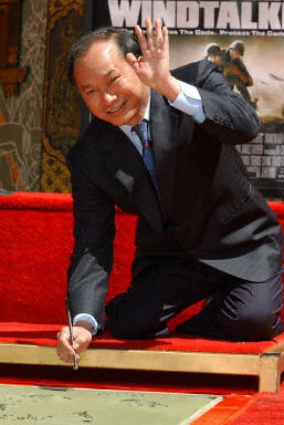 圖:中國香港著名導演吳宇森留印好萊塢 2002年05月22日 12:53 5月21日,中國香港著名導演吳宇森在美國影城好萊塢的“中國戲院”前的水泥地板上印上了自己的手印和足印。法新供中新