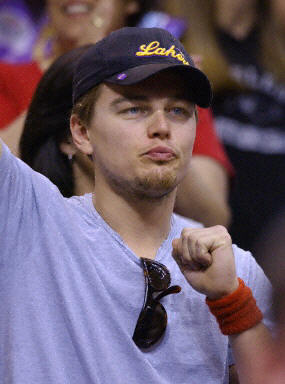 圖:萊昂納多關(guān)注NBA西區(qū)決賽 2002年05月27日 14:28 5月26日美國演員萊昂納多在NBA西區(qū)決賽上為洛杉磯湖人隊歡呼。湖人隊以100-99戰(zhàn)勝國王,雙方總比分戰(zhàn)成2比2平。法新供中新