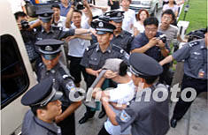 猥褻七名男童 歌手紅豆一審被判三年半徒刑(圖) 2002年06月20日 17:07 ![]() 猥褻多名男童的青年歌星紅豆二十日在北京朝陽法院被一審判處三年零六個月的徒刑。圖為紅豆在法庭宣判結束后,用衣服捂著頭走上囚車。中新社圖 武仲林 攝