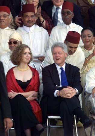 圖文:美國前總統克林頓和女兒參加摩洛哥國王婚禮 2002年07月13日 14:37 ![]() 摩洛哥國王穆罕默德六世12日晚在拉巴特王宮同拉拉-薩爾瑪公主舉行結婚慶典。圖為美國前總統克林頓和女兒在婚禮上。(春風)