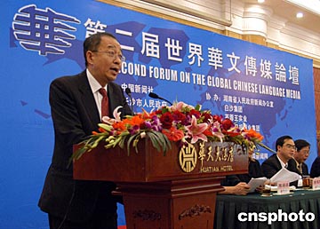 “第二屆世界華文傳媒論壇”二十三日在長沙閉幕,國務院僑辦副主任、中新社社長劉澤彭在閉幕式上稱世界華文傳媒論壇是一個寬大的平臺,在這個平臺上,朋友們為全球華人的文化和信息交流編制了一個美麗、緊密的“中國結”。中新社記者:張宇