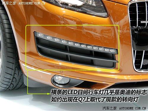 LED燈組是現在最流行的趨勢,從豪華車到微型車都在逐步采用這樣的設計,而奧迪無疑是這方面的先驅之一,應用LED日間行車燈最拿手的也是奧迪,現在它將這一幾乎成了標志的組件裝在了Q7上。