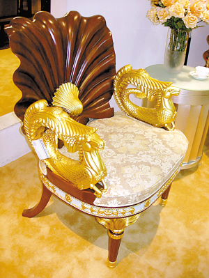 炎炎夏日,貝殼是能為人們帶來清涼氣息的造型代表。這張“貝殼椅”的椅背被設計成貝殼狀,它完全由手工制成,價值不菲。扶手部位的動物雕花是先雕刻出來后再在上面鍍了一層24K的工業金,與黃金同樣顯現奢華氣派卻更容易打理;為了配合這一季的特點,椅子的腰背部位裝飾著一顆真正的貝殼,華貴中又帶著撲面而來的海洋氣息。