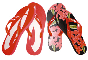 據介紹,沙灘鞋輕巧、柔軟、減震性良好,并且防霉、防臭、透氣、防水、吸濕、速干,適合海邊漫步,也適合日常穿著。記者還了解到,今年沙灘鞋鞋底用料主要有兩大系列:PVC和EVA。PVC膠耐磨、防霉、防臭,但比較笨重、透氣性不強;而EVA膠輕巧,透氣、防水性能好,但不耐磨。有部分品牌今年推出雙層膠底鞋,與地面接觸的底用耐磨的PVC膠,與腳底接觸的用輕巧、透氣性好的EVA膠。
