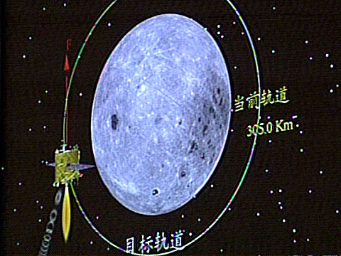 今天下午,國防科工委就中國繞月探測工程首次飛行任務的有關情況召開新聞發布會。李國平在發布會上介紹,北京時間11月7日8時34分,嫦娥一號衛星順利完成第3次近月制動,成功進入經過月球南北兩極,軌道周期127分鐘的圓軌道。至此,嫦娥一號衛星從10月24日成功發射以來,經過326個小時的飛行,順利實施了4次加速、1次中途軌道修正、3次近月制動共8次變軌,經歷調相軌道、地月轉移軌道、月球捕獲軌道3個階段,總飛行距離約180萬公里,最終成功進入環月工作軌道。