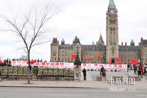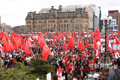 中新網渥太華4月13日電 4月13日下午,加拿大首都渥太華國會山廣場被鮮艷的中加兩國國旗和奧林匹克旗幟淹沒,近萬名來自加拿大各地的華人聚集在一起,舉行“宣傳西藏真相,維護祖國統一”大型集會活動。以下是渥太華《七天新聞》提供給本網的發自現場圖片報道。