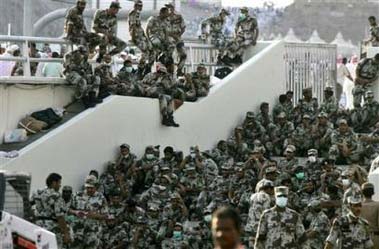 沙特衛(wèi)生大臣哈馬德·本·阿卜杜拉·馬尼阿12日說,伊斯蘭教圣地麥加當(dāng)天中午發(fā)生擁擠踩踏事件,造成至少345人死亡,289人受傷。圖為安全人員集聚在出事地點。(章田)