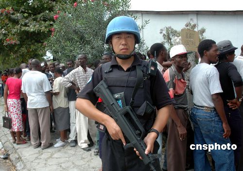 北京時間2月12日海地太子港消息:日前,在聯合國駐海地穩定代表團和維和人員共同努力下,海地總統大選第一輪選舉順利舉行。中國維和警察防暴隊以其嚴謹細致的態度和頑強向上的作風贏得聯海團和海地民眾一致稱贊。正像海地維和警察總監說的那樣,選舉的成功舉行在很大程度上有賴于中國防暴隊對于選票統計中心進行的成功的、卓有成效的保衛工作。 海地大選期間,形勢緊張,游行示威和刑事案件不斷發生,槍聲不斷增多,針對海地復雜動蕩的社會形勢,中國防暴隊積極應對,調整警衛方案,加固增強防御工事,制定各種應對突發事件的行動預案。防暴隊黨總支多次召開會議,研究制定各種行動方案和應急突發事件處置預案。各戰斗分隊反復演練戰術,提高臨戰意識,隨時應對可能出現的各種情況,保證大選安全。在2月7日大選當天,選民較多,在投票點執勤的三位隊員,看到有十幾位選民因擁擠倒在鐵絲網上,他們迅速控制住擁擠的人群,一一將跌倒的選民從鐵絲網上扶起來,受到海地人民贊許。聯合國秘書長安南在聯海團的特別代表瓦爾德斯說:中國防暴隊是值得信賴的一支隊伍,他們完成了一項了不起的工作,我們期待著海地從此走向穩定之路。作者:維和