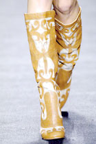 今年設計師們強調蝴蝶的高雅、古典和夢幻色彩。根據配飾流行情報透露,本季蝴蝶配飾和鞋包一定大熱。不妨參考一下梵克雅寶今年春夏Envol珠寶系列,精巧古典的單蝶戒指和三蝶手鐲。而另一個偏愛蝴蝶的設計師安娜·蘇本季也推出可愛的冰藍色和淺咖啡色蝴蝶貼片長靴和手袋。從中我們可以明白一個道理:本季的蝴蝶要走上流路線,高雅而富有想像力,是公主般的優雅蝴蝶。
