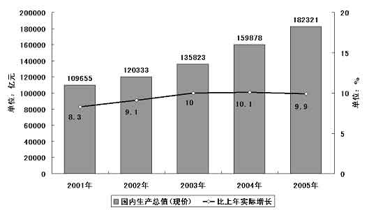 圖表一 “十五”期間國內生產總值及其增長率