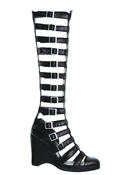 在今季的靴型涼鞋中,黑與白的配搭組成了另一條個(gè)性分明的戰(zhàn)線,一向品位出眾的國際品牌Chanel便是個(gè)中極品,Chanel今季推出的一款扣帶鏤空楔型靴,密密麻麻的綁帶一直蔓延到膝蓋處,金屬的扣夾加上復(fù)古的圓頭坡跟,帶有一絲浪漫中性的軍旅風(fēng)格。其另一款則沿用了干練的短靴設(shè)計(jì)風(fēng)格,在腳腕處柔軟的白色皮質(zhì)上方,纏以簡練的黑色線條,黑與白的完美配搭帶一點(diǎn)后現(xiàn)代的前衛(wèi)感覺。