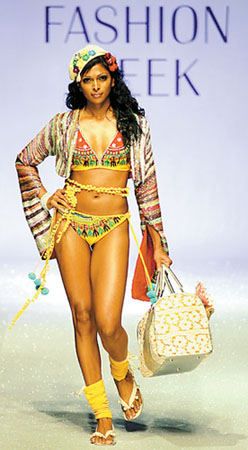 今年春夏,設(shè)計師受到了非洲、印度民族服裝特色的影響,紛紛推出了充滿熱帶叢林風情的泳裝。