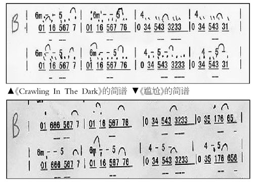 而就在記者采訪結(jié)束后,鑒于斌迷們一再要求,方圓在她的博客中又貼出了兩首歌曲的“和弦進(jìn)行”部分樂譜作為回應(yīng),并做出了專業(yè)的解釋。不過記者也意外發(fā)現(xiàn),這次在方圓的博客中又明確指出,胡彥斌的歌曲中,除了《皇帝》與Seven的《熱情》極其相似外,還有《情不自禁》與艾薇兒《WhoKnows》、《你這么晚了還沒睡》與Usher《Burn》、《尷尬》和《CrawlingInTheDark》都非常相似,并毫不客氣地在博客中貼出了這幾首歌的和弦樂譜和簡譜,以便大家考證。(記者吳冬妮)