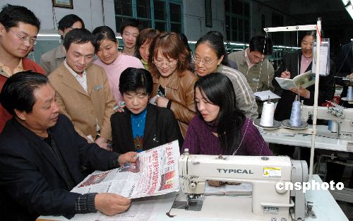 10月22日晚,山西運(yùn)城一民營(yíng)企業(yè)的員工在車(chē)間學(xué)習(xí)“十七大”會(huì)議精神,并進(jìn)行討論發(fā)言。中新社發(fā) 黃文鵬 攝
