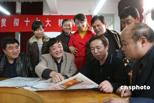 10月23日,河南省開封市文化藝術學校的黨員干部正聚在一起學習貫徹“十七大”會議精神。中國共產黨第十七次全國代表大會剛剛閉幕,河南省開封市各界黨員干部和群眾迅速掀起學習貫徹十七大精神的熱潮,大家紛紛表示要以十七大精神為動力推動當前工作,堅持開拓進取、不斷創新,譜寫人民美好生活新篇章。中新社發 凱楓 攝