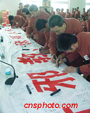 近百名悔悟的法輪功練習者22日參加了“反對邪教,保障人權”百萬公眾簽名活動,決心與法輪功邪教徹底決裂。中新社圖 潘旭臨 攝