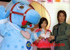 歌星葉佩雯、郭偉良等歌手7日出席香港賽馬會(huì)“愛神小馬”見面禮記者會(huì)。中新社傳真 鄧慶樂攝