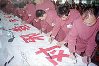 悔悟的法輪功練習者在“反對邪教、保障人權”百萬公眾簽名活動中,在百米長幅上簽下自己名字,以示與法輪功徹底決裂。