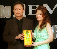 紅遍內地、香港及臺灣的藝人林心如28日在香港、臺灣媒體的見證下,簽約成為BMG唱片公司旗下歌星,BMG唱片公司崔震東先生并向林心如贈送一個琉璃如意,藉此祝福她的演藝事業(yè)更圓滿如意。中新社傳真 鄧慶樂 攝